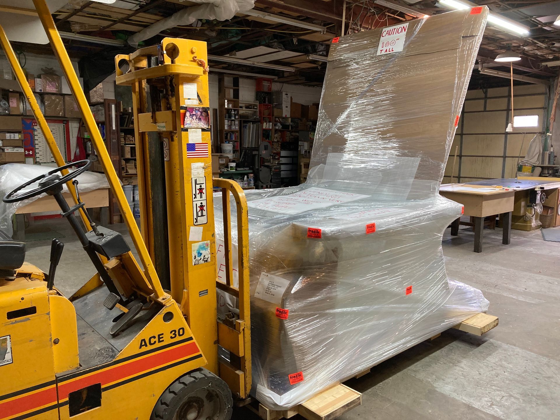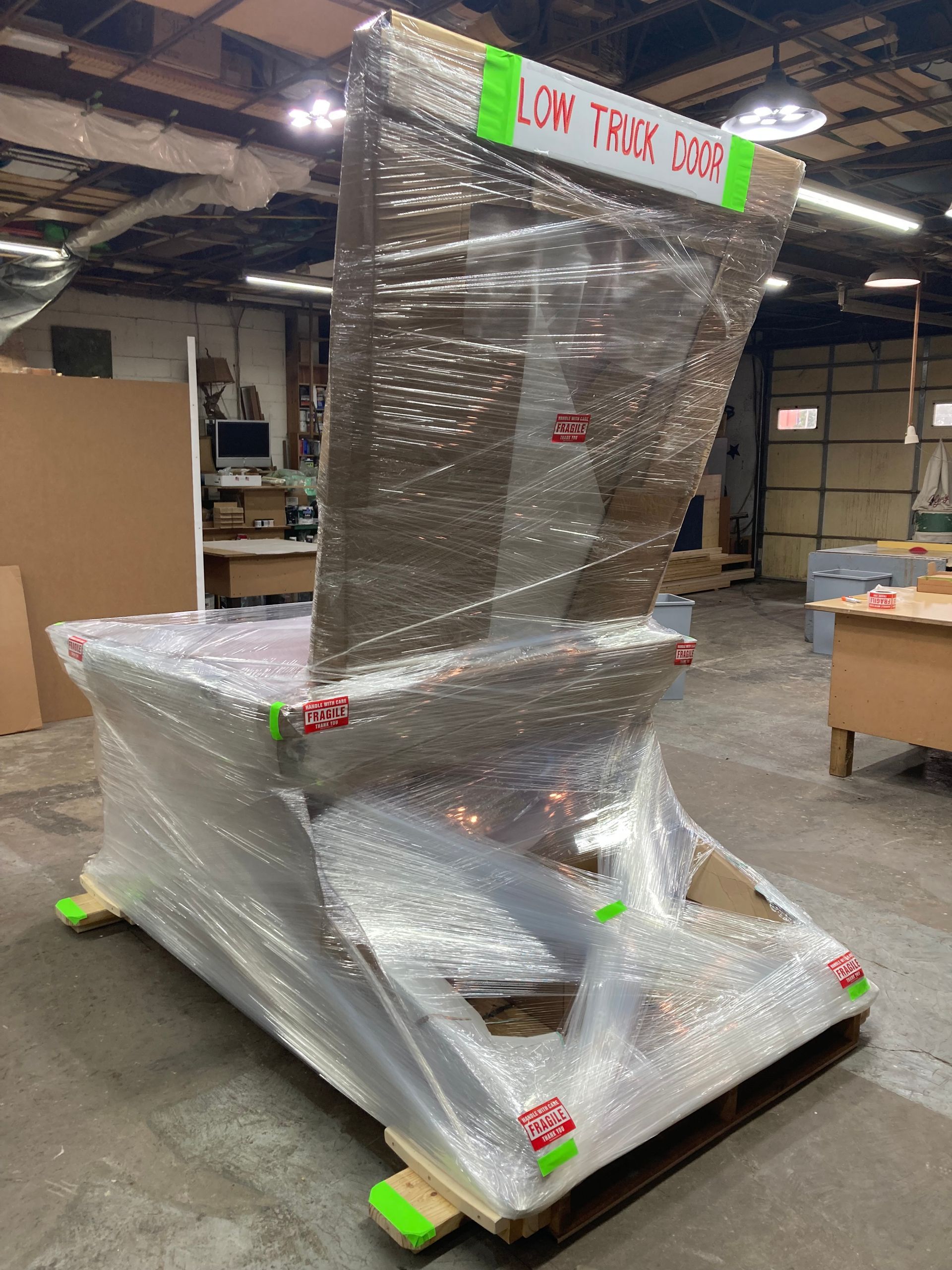 Once your chair is painted, assembled, and customized, it is prepared on a custom pallet and will arrive to you fully assembled!