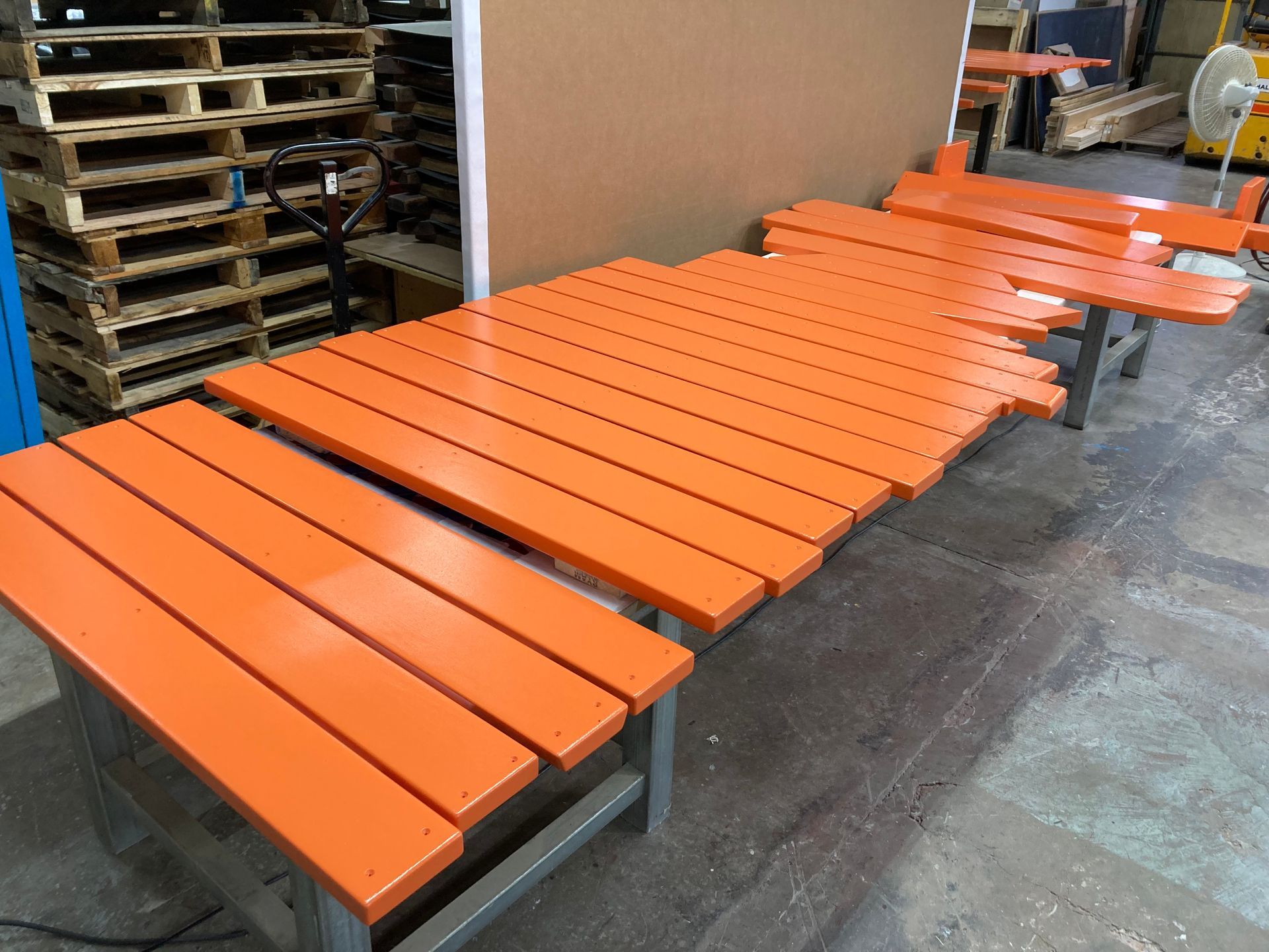 Once the parts are created and tested they're taken to our paint shop to be coated with your choice of color. Each chair is given 6 coats of paint to ensure quality for years to come.